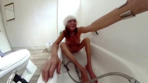 Lizzy Yum enjoys solo edging and dilating in the bath with her big tits
