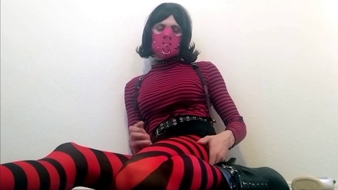 Sissy in fishnets and spandex teases and edges for your pleasure