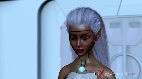 A hot 3D sci-fi android dickgirl rides a gorgeous girl in the space station