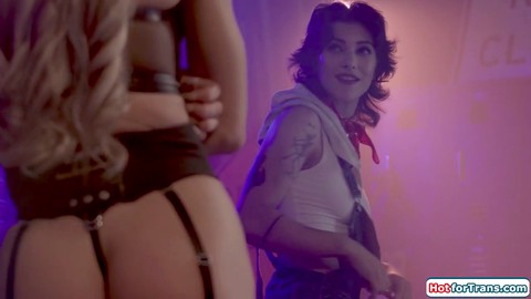 Buxom trans Chanel Santini takes on a tattooed milf in the backdoor action