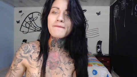 Tattooed shemale molten fat Johnson Shebabe switches it up in a webcam show