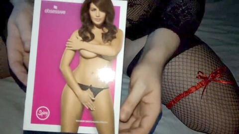 Busty blonde t-girl Lora Hoffman in lingerie strokes her cock