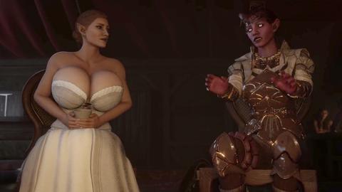 3D animation of a busty cougar getting her cum drained
