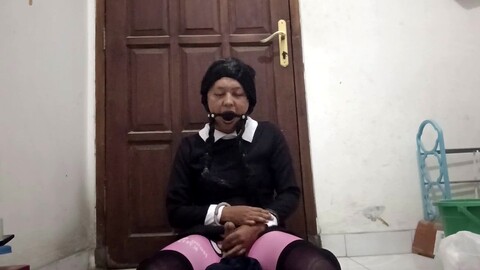 Girly boy in stockings gets naughty with sex toys in various uniforms!