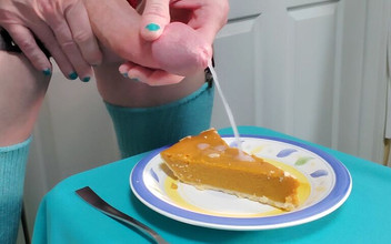 Rikki Ocean Covers Her Pumpkin Pie with Her Special Hand-whipped Cream and Enjoys Every Bite